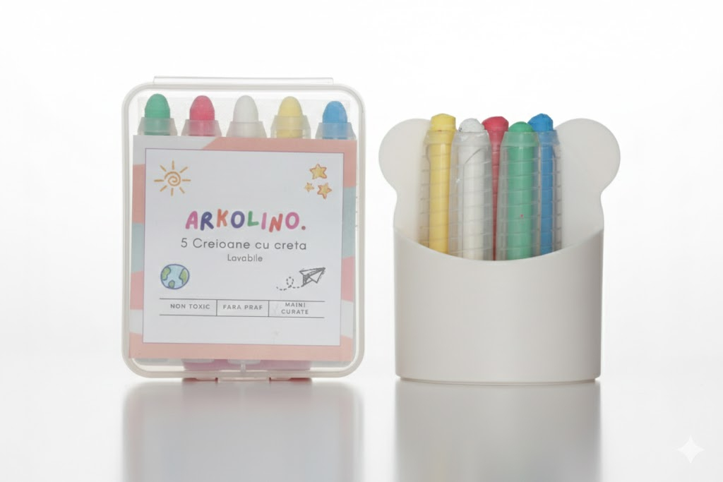 Set 5 Creioane de Creta Lavabile – curata, creativitate nelimitata! Acest set contine 5 creioane colorate cu creta lavabila, special concepute pentru copii.