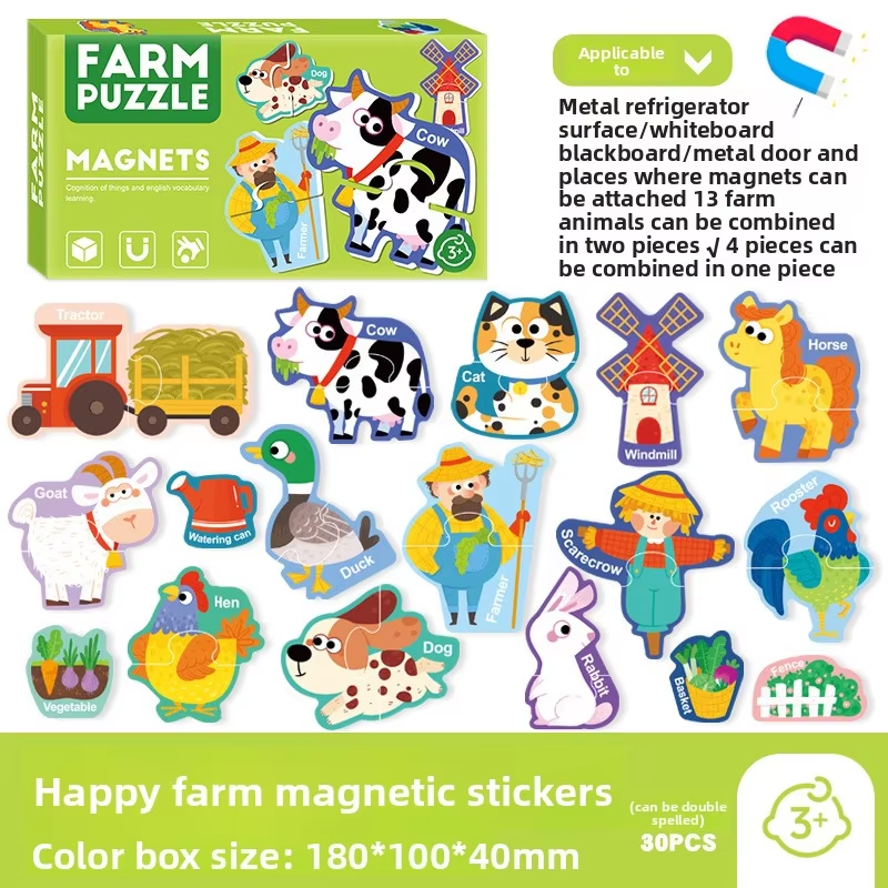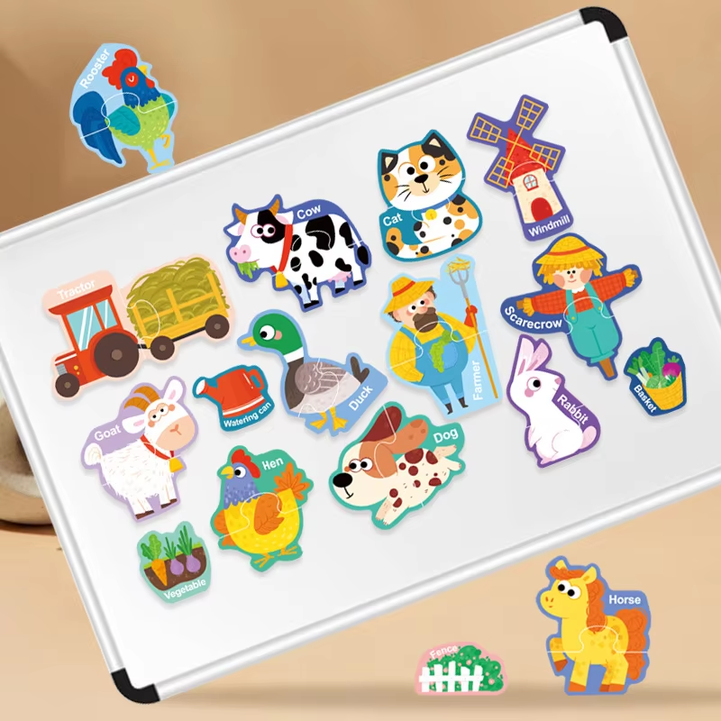 Set educativ de puzzle magnetic cu tematica viata la ferma, conceput pentru a stimula imaginatia si invatarea prin joaca.